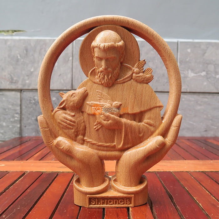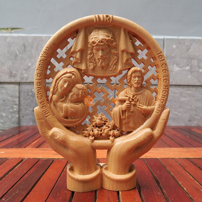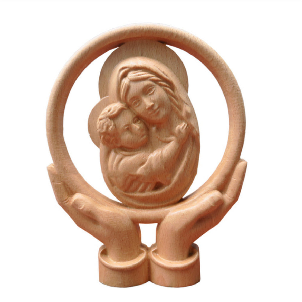 Wood Carving Catholic Icons is exquisitely engraved on high quality Beech wood imported from Germany and is uniquely designed so that when put together, a very compact circular cylindrical block.